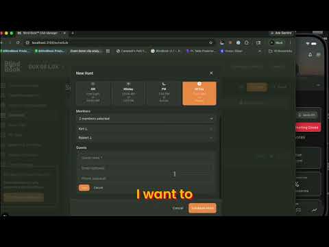 Book a hunt for next week or next month. Add guests, assign blinds, and fill in details so everything's ready when the day comes.