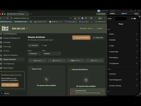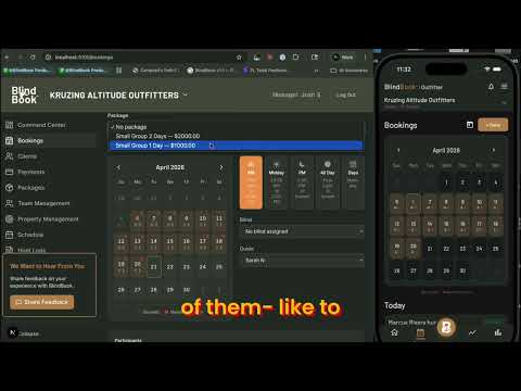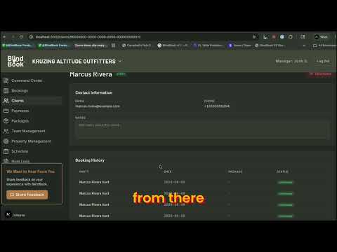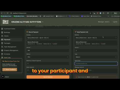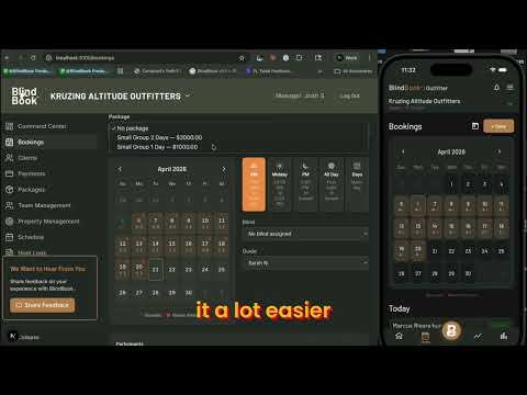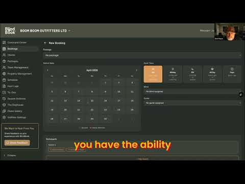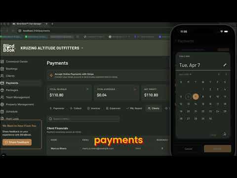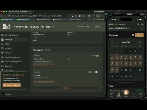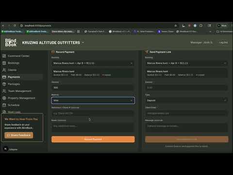 End-to-end outfitter walkthrough: booking inventory, Stripe payments, auto-send waivers, guide assignments, client CRM, and compliance exports. Everything an outfitter runs through BlindBook.