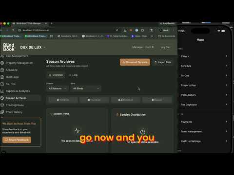 Complete guided tour for clubs and squads. Command center setup, member management, hunt logging, analytics, weather correlation, and year-over-year performance tracking.