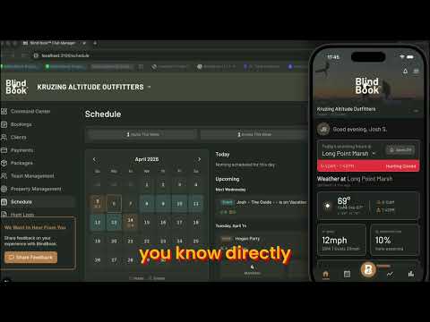 The complete outfitter experience: bookings, guides, clients, harvest, and payments in one place.